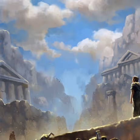 Thaeriel’s eyes flare, and the starry cosmos recedes, replaced by a vast and gleaming arena. The sun beats down on it, as though they were far below, on Eucos.