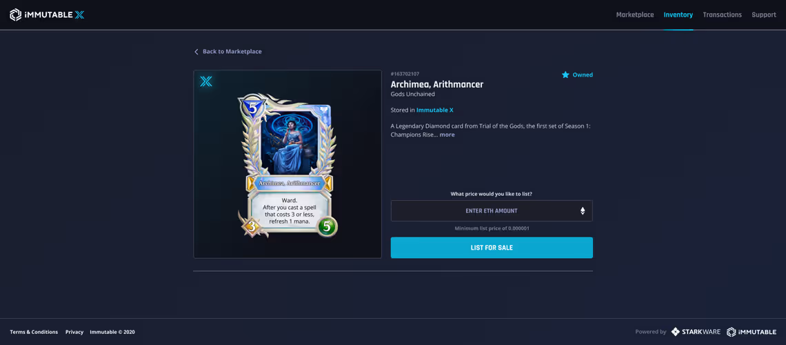 It’s important to note that the Immutable X marketplace will begin as a simplified version of the current Gods Unchained Marketplace with reduced filters and search functionality, but these will be built into Immutable X as we go along. The main priority is to unlock trading for all mortals, giving a deeper meaning to card ownership.