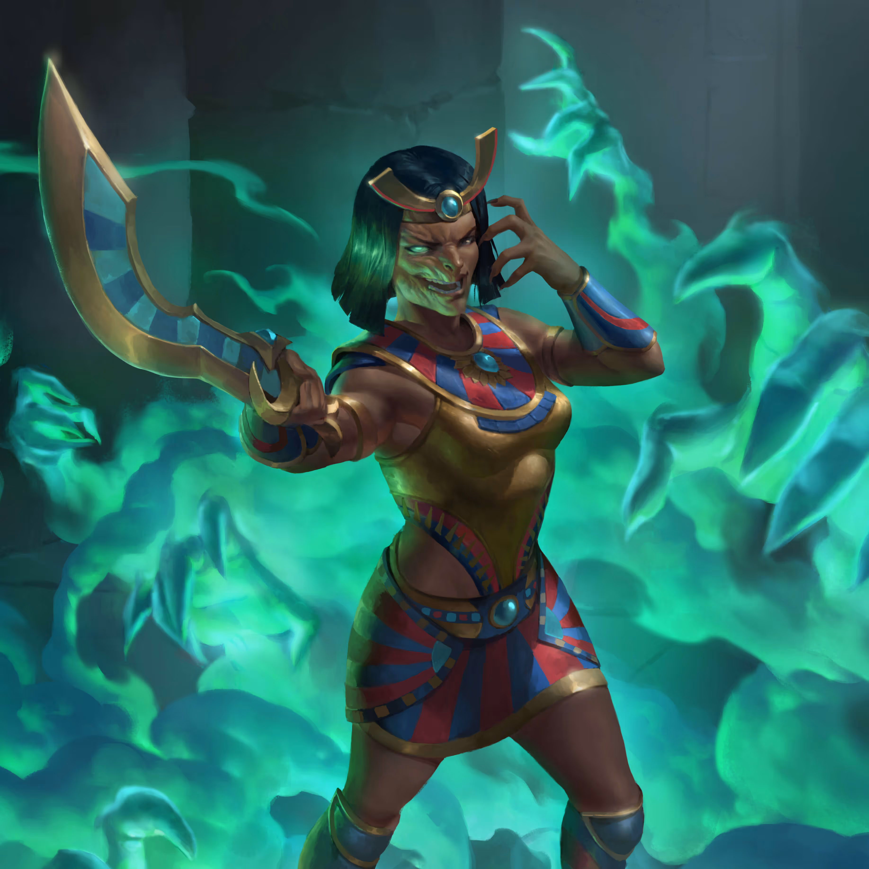 “I have a Pharaoh,” she said, coldly. Neferu tilted her head slightly, and opened her mouth impossibly wide. All of Hierakon heard the scream that came forth. A piercing sound of bitter sorrow. A wind from Morcos, the land of the dead. Nexeu’s face tightened in sheer terror and he stumbled back behind his circle of guards. The six warriors started to charge in, now that their Pharaoh was safely behind them.