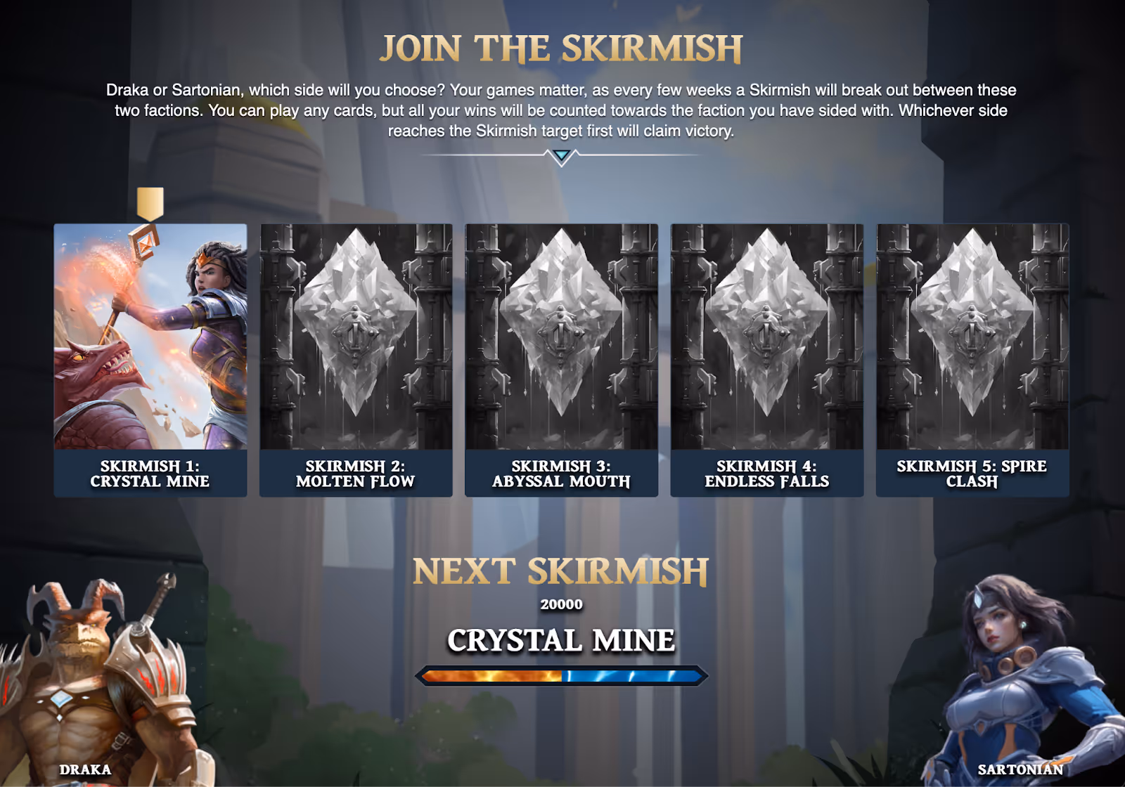 Tides of Fate introduces a new feature where you choose to join the Draka or the Sartonians, fight to bring your side to victory, and impact the story and cards forever.