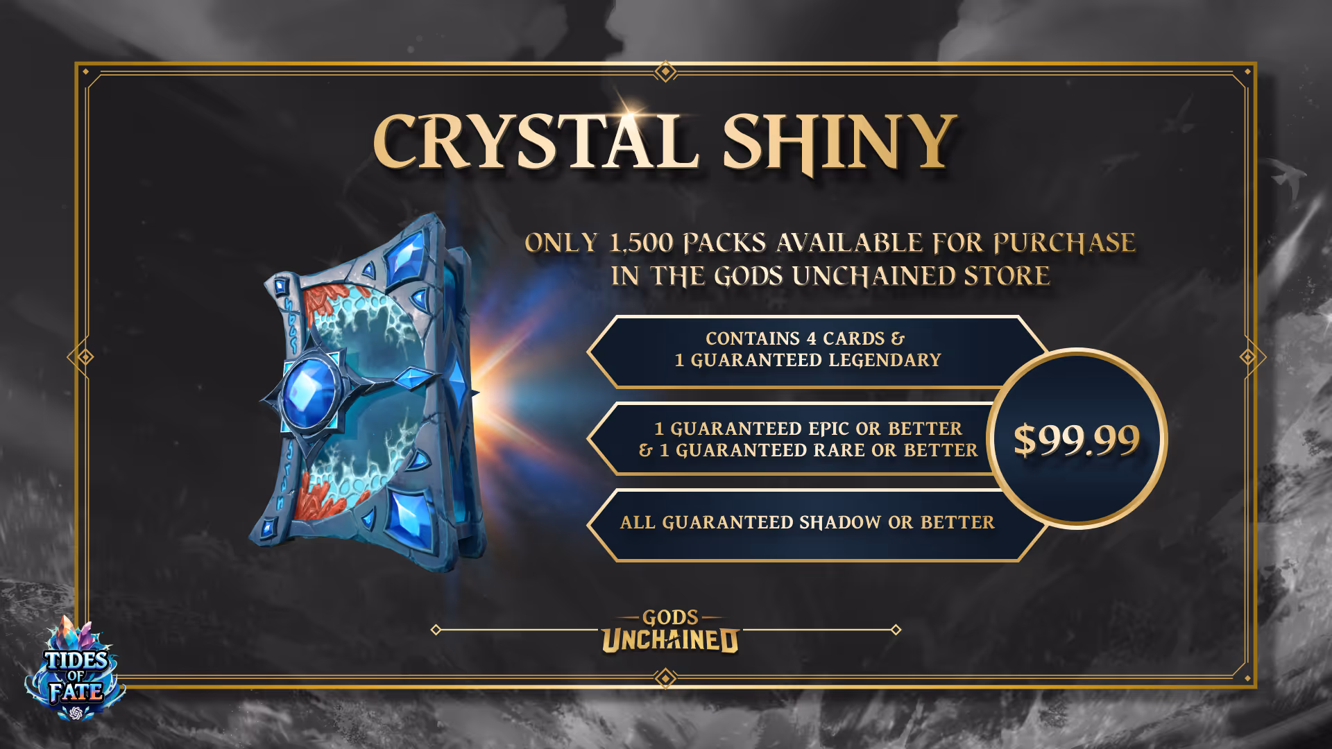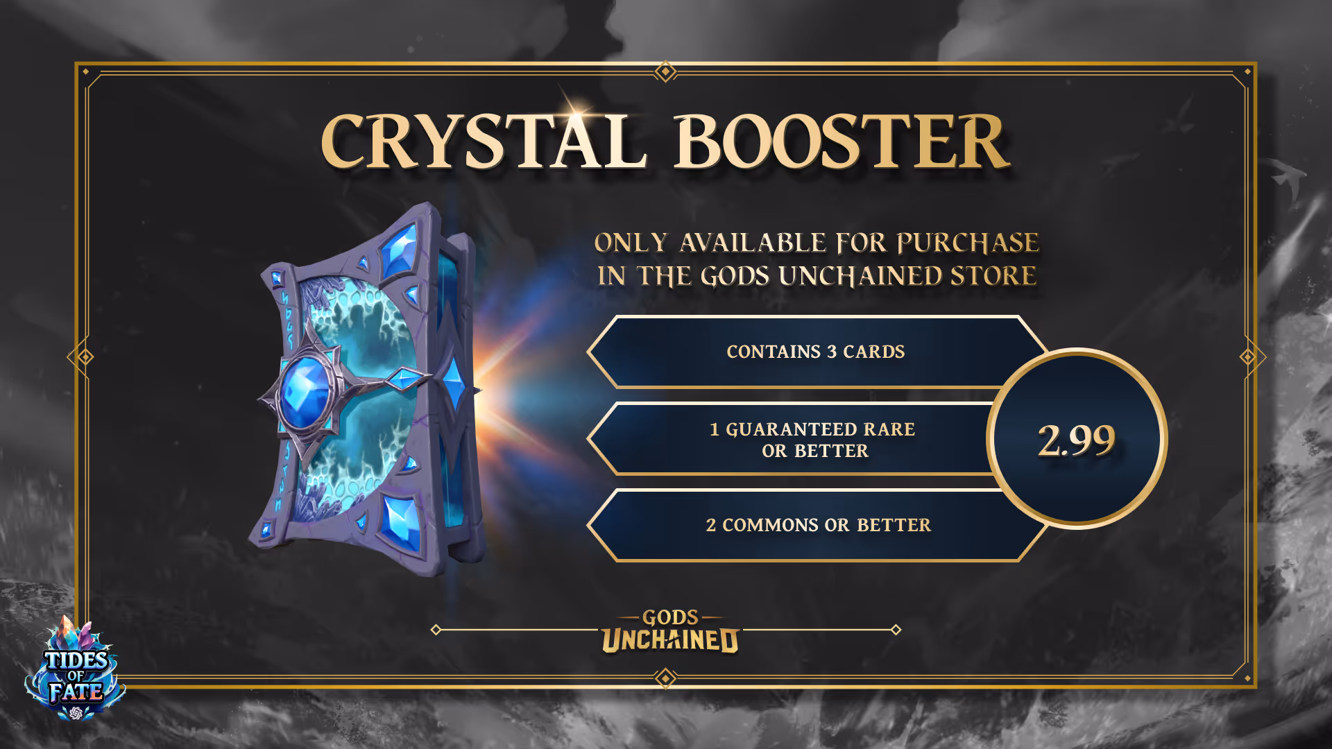 🔹 October 25th, at 11am AET: Tides of Fate officially launches! You will be able to purchase Crystal Packs through the Gods Unchained Store, and win Tides of Fate cards by playing Sealed Mode.