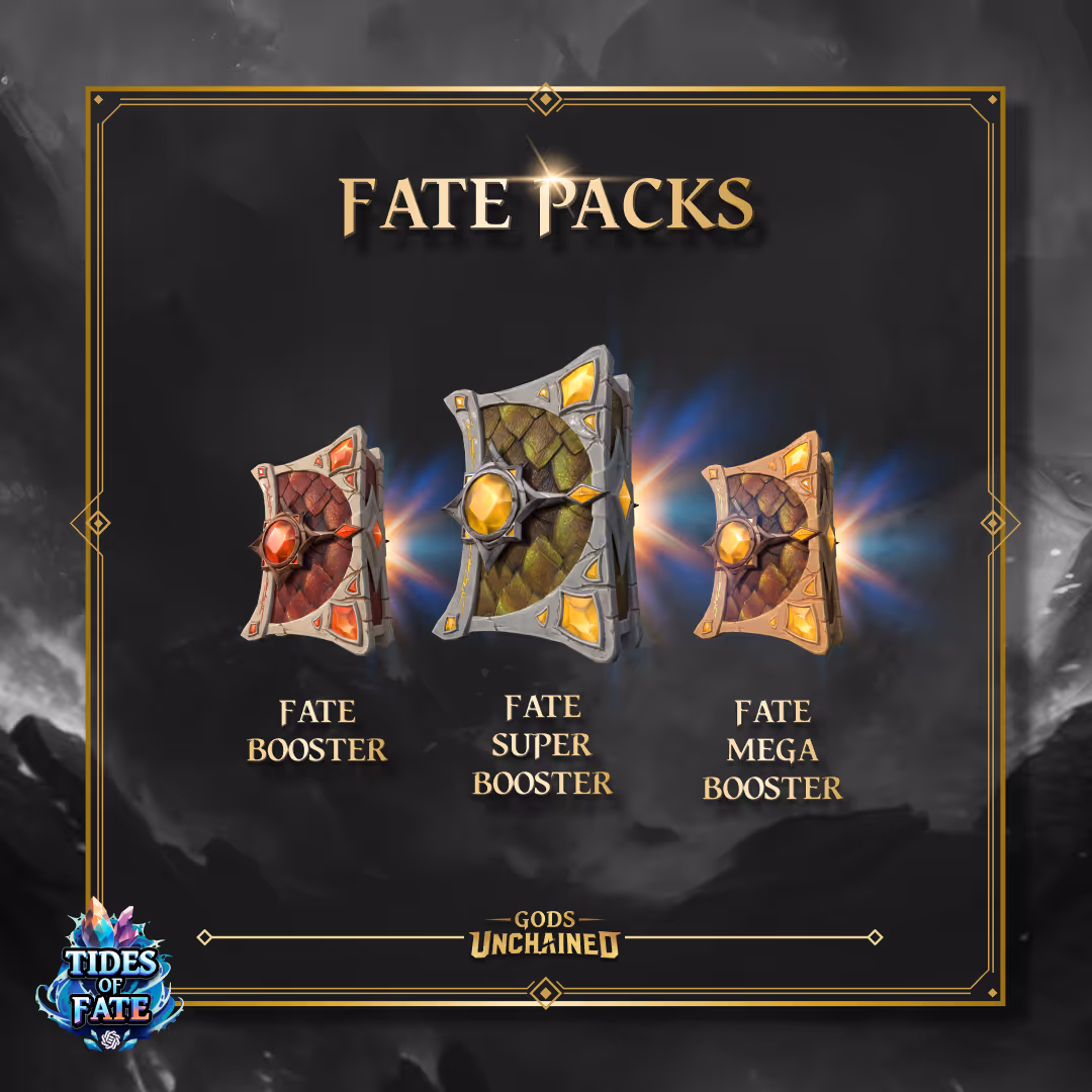 Tides of Fate Crystal packs are now for sale on the Gods Unchained website!