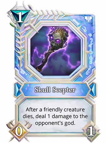 CryptozNewb: Skull Scepter has a lot of haters at the moment. But I think it's a much needed addition to the meta as it works as a decent counter against removal-heavy decks. With only 1 durability, it is easily destroyed – but if it sticks around for a while it can really make a difference!