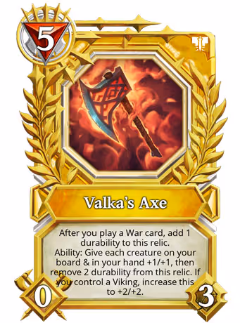 Intense Training and Valka's Axe are both very low tempo plays, which can make for some slow early games. That doesn't matter at all if you play Valka's Axe early and stay in the game until 6 to 7 mana. That's when things can start really getting out of hand. It may not be what I'm bringing to the Weekend Event, but it's definitely a super fun card.