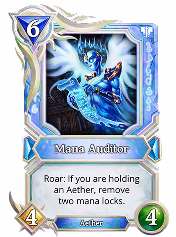 One of my favorite plays when playing Control Aether Magic is to bag out a Mana Auditor when I have 5 mana + 1 unlock, and then play Inferno or Demogorgon the next turn, without needing another bag! Currently, Mana Auditor isn’t seeing much play because Control Aether Magic is pretty bad as a deck (the other Aethers are not up to par), but with some support, this card could really shine.