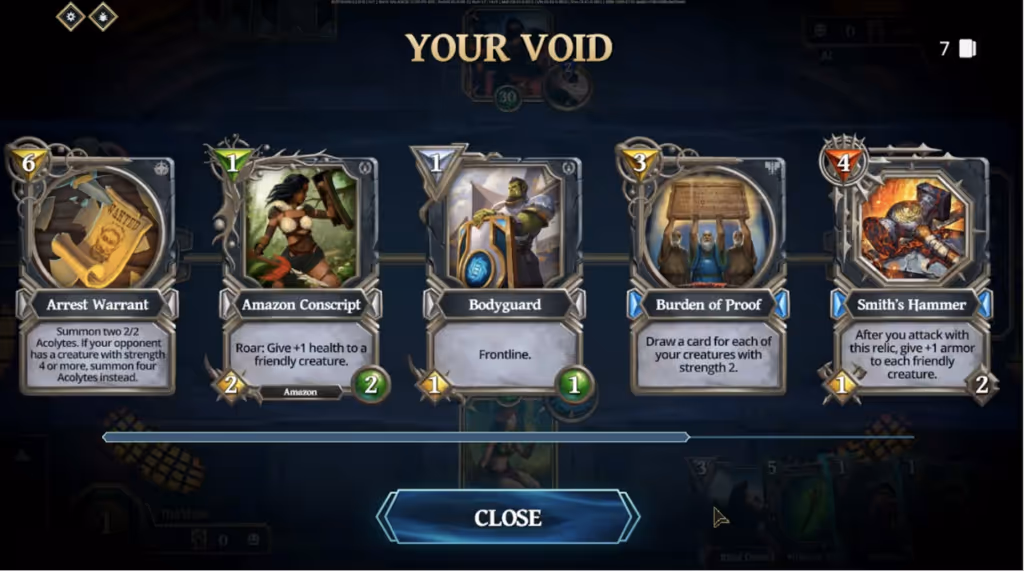 As part of the improved void view network code hinted at last week, we’re also sharing the updated designs of unified card interface screens. The aim is to have a unified design for all card screens in-game. There will be synergy improvements for all screens. One early improvement is a card counter of that view. Have a look at the video from the team below.